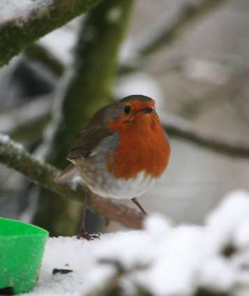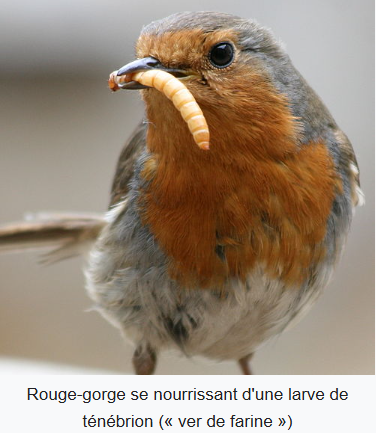 Long de 13 cm, pesant environ 20 g, notre passereau n’est pas farouche. De ses gros yeux noirs, il observe le jardinier travaillant la terre et il s’en approche, dans un but intéressé. Il espère que derrière la motte soulevée, il trouvera l’une ou l’autre de ses friandises préférées : une chenille, une larve, des fourmis, une araignée, des cloportes et même des lombrics. En été et en automne, le rouge-gorge se jette avec gourmandise sur les baies : mûres, groseilles, framboises, sureau noir. Et l’hiver, tout insectivore qu’il est, le rouge-gorge fait preuve d’une grande adaptabilité en se nourrissant des graines qu’il trouve dans les mangeoires. Sans doute avez-vous observé qu’il marque une préférence pour celles tombées au sol.